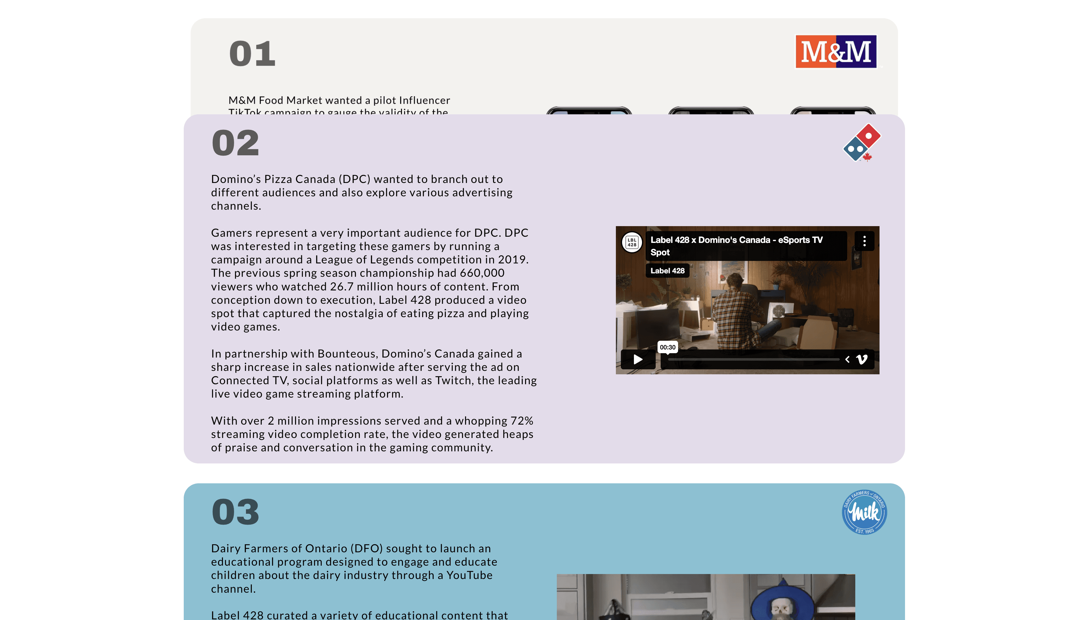 The result: a sleek, engaging website that positions Label 428 as a forward-thinking production studio — matching their craft-level work in food & beverage content while offering a scalable base for publishing case studies, showreels and brand campaigns.