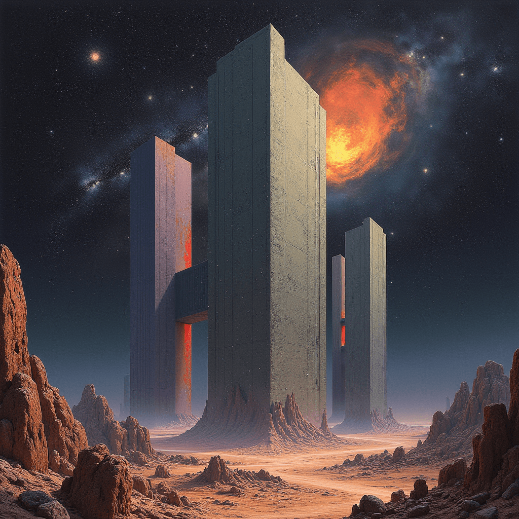 A meditation on infinity and isolation. These vast, desolate worlds exist somewhere between architecture and dream — where monolithic forms rise like echoes from a forgotten universe. Every frame feels suspended in time, capturing the silence between creation and collapse.