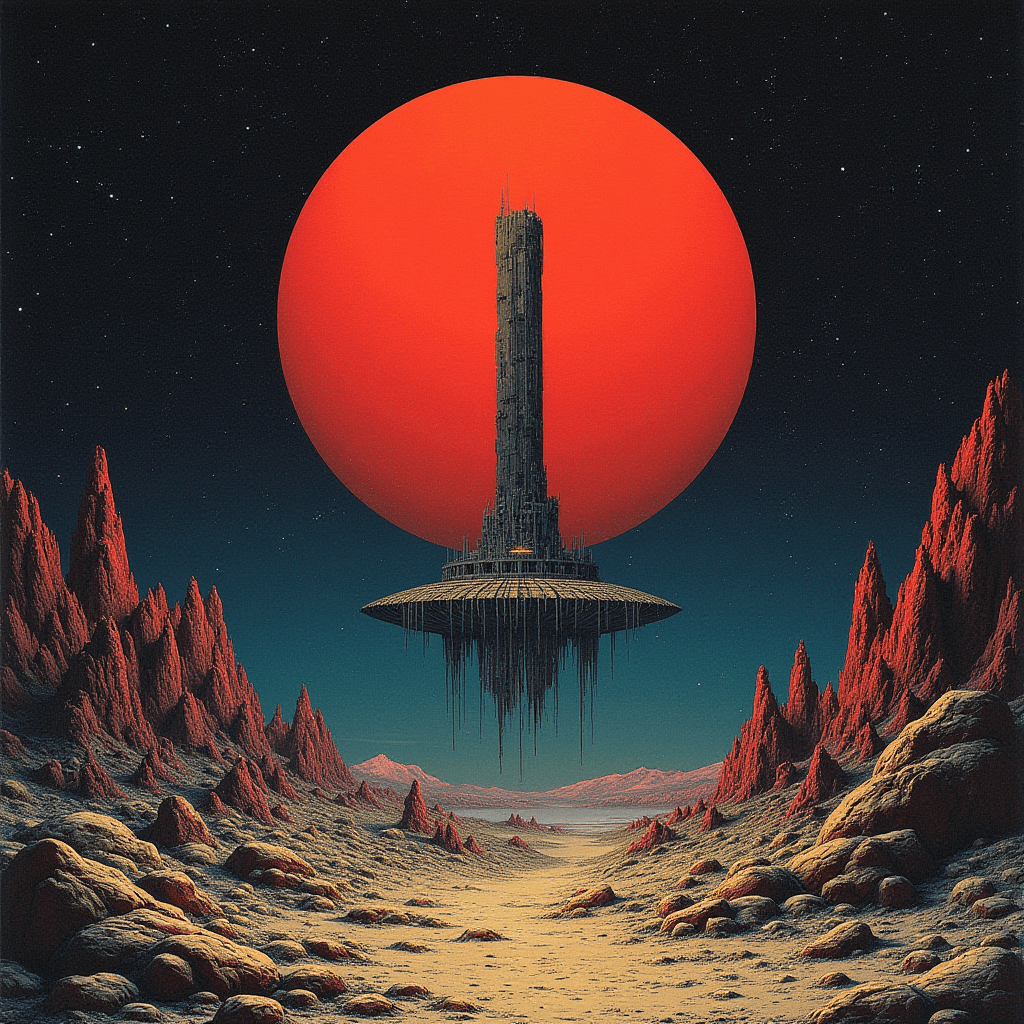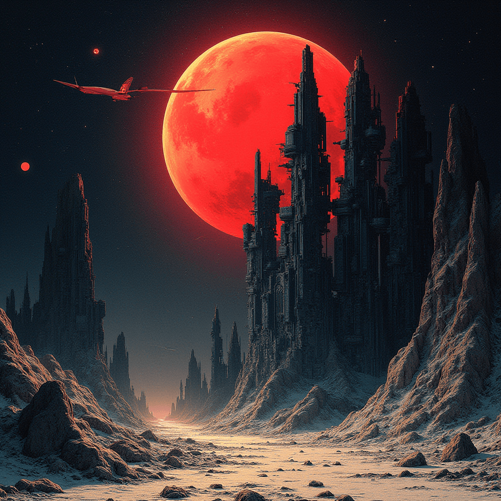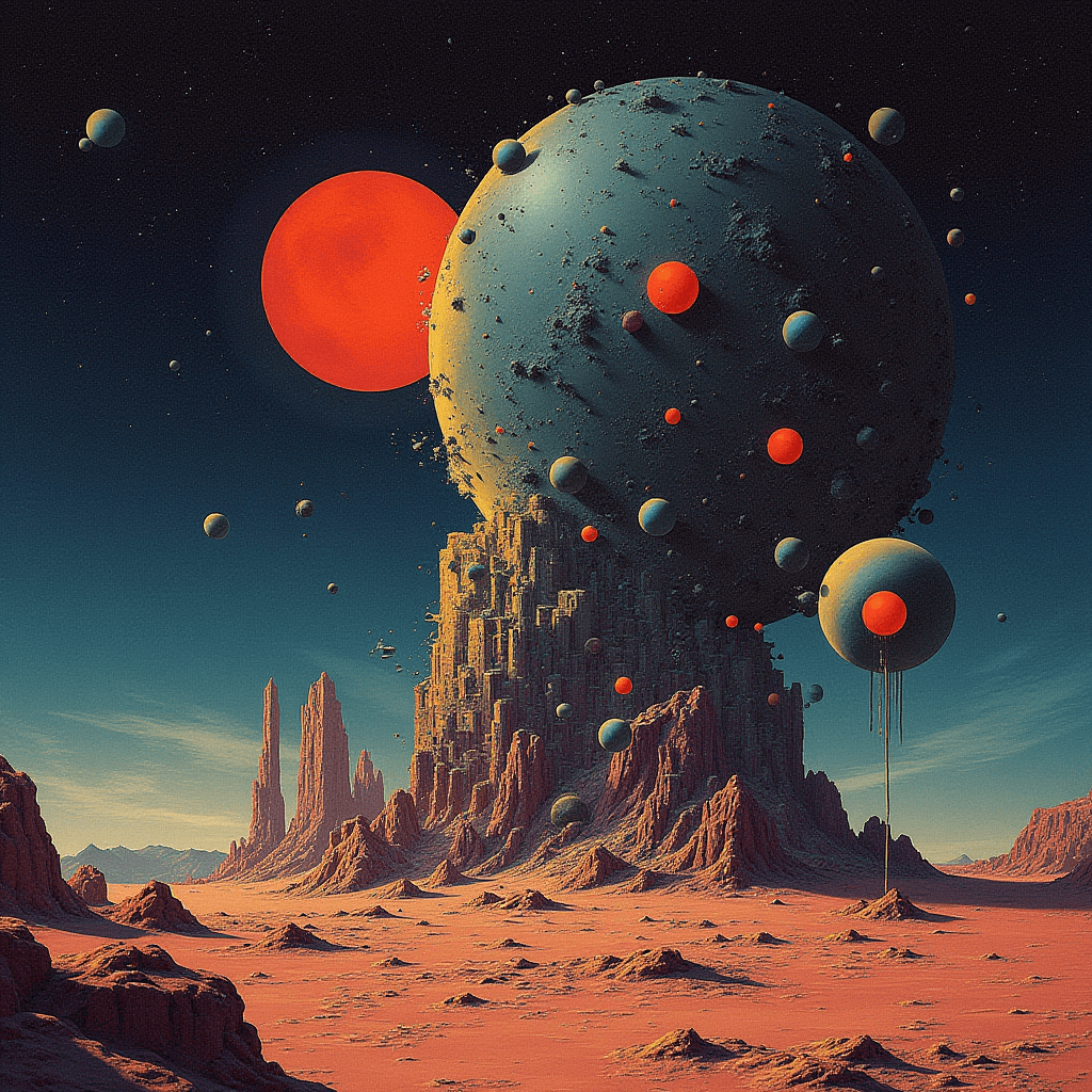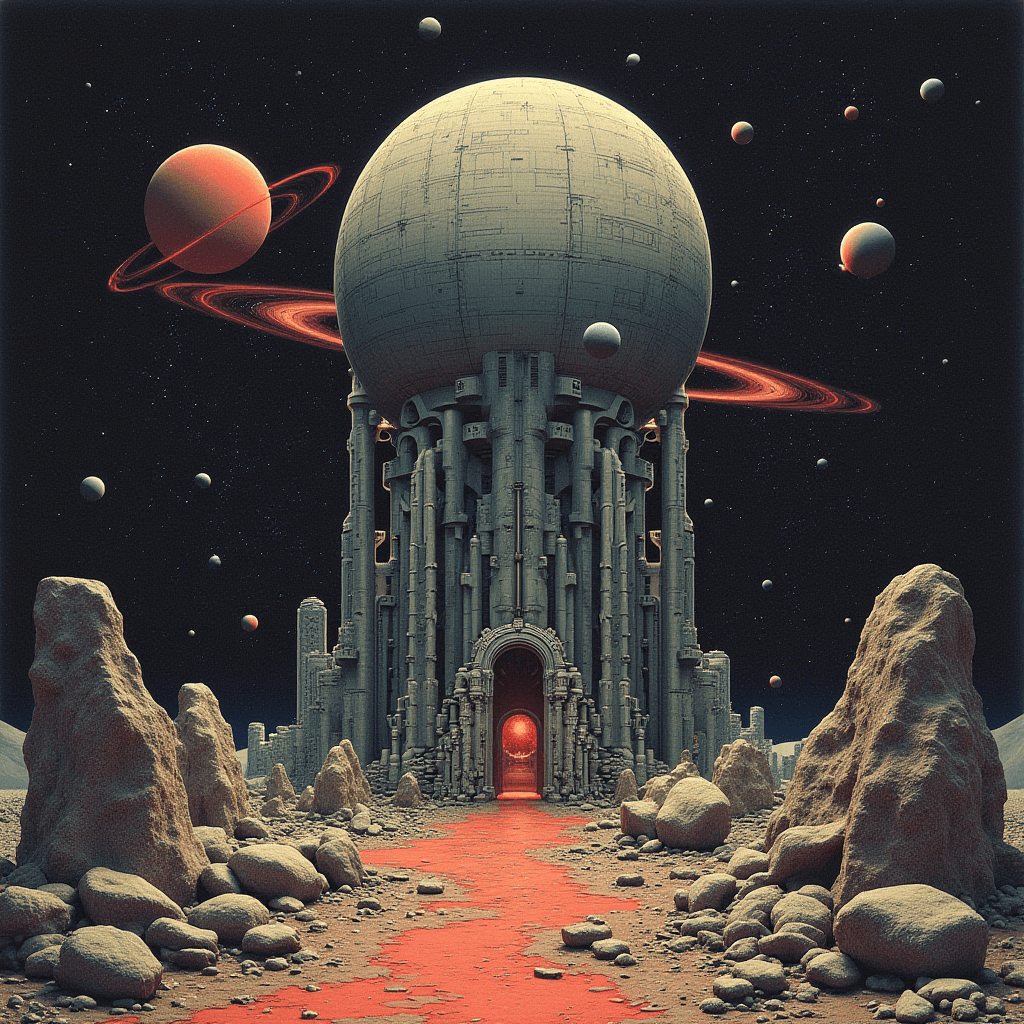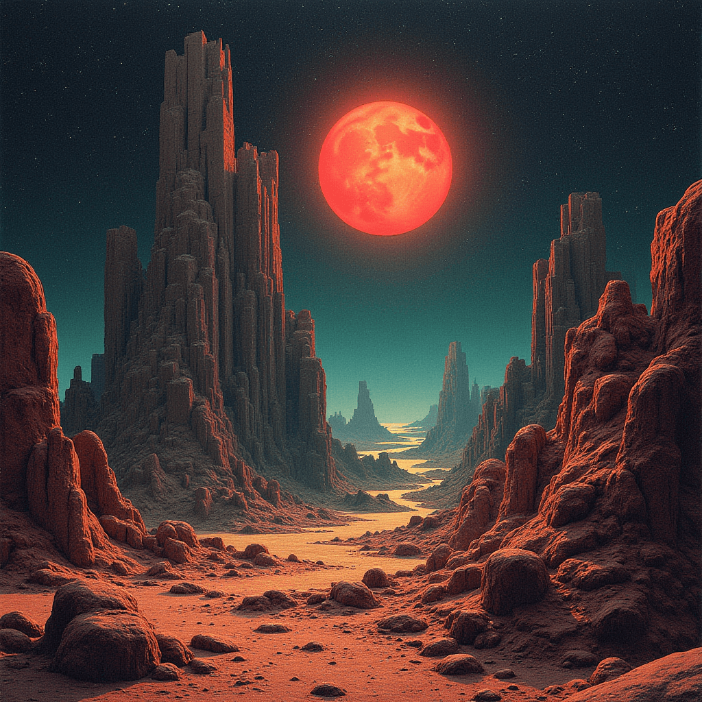 Built entirely with Flux Dev inside ComfyUI, this series explores cosmic brutalism — a fusion of geometric precision and existential scale. Each landscape was designed to evoke the feeling of standing alone before eternity, blending red-spectrum atmospheres with otherworldly terrain sculpting. The result is a glimpse into the void — beautiful, cold, and infinite.