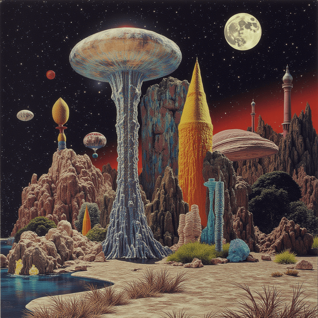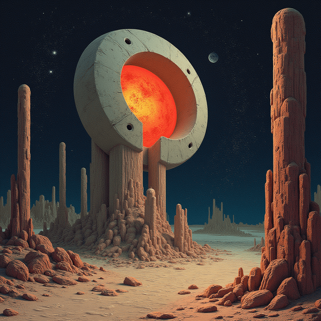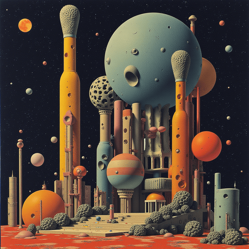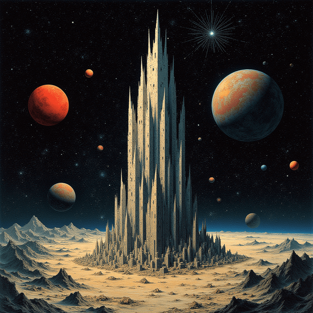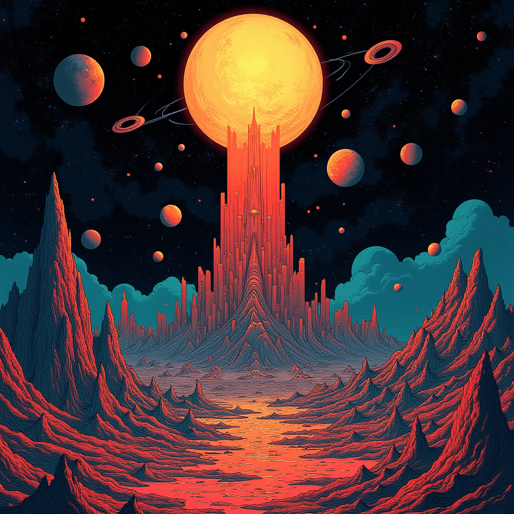 Built entirely with Flux Dev inside ComfyUI, this series explores cosmic brutalism — a fusion of geometric precision and existential scale. Each landscape was designed to evoke the feeling of standing alone before eternity, blending red-spectrum atmospheres with otherworldly terrain sculpting. The result is a glimpse into the void — beautiful, cold, and infinite.