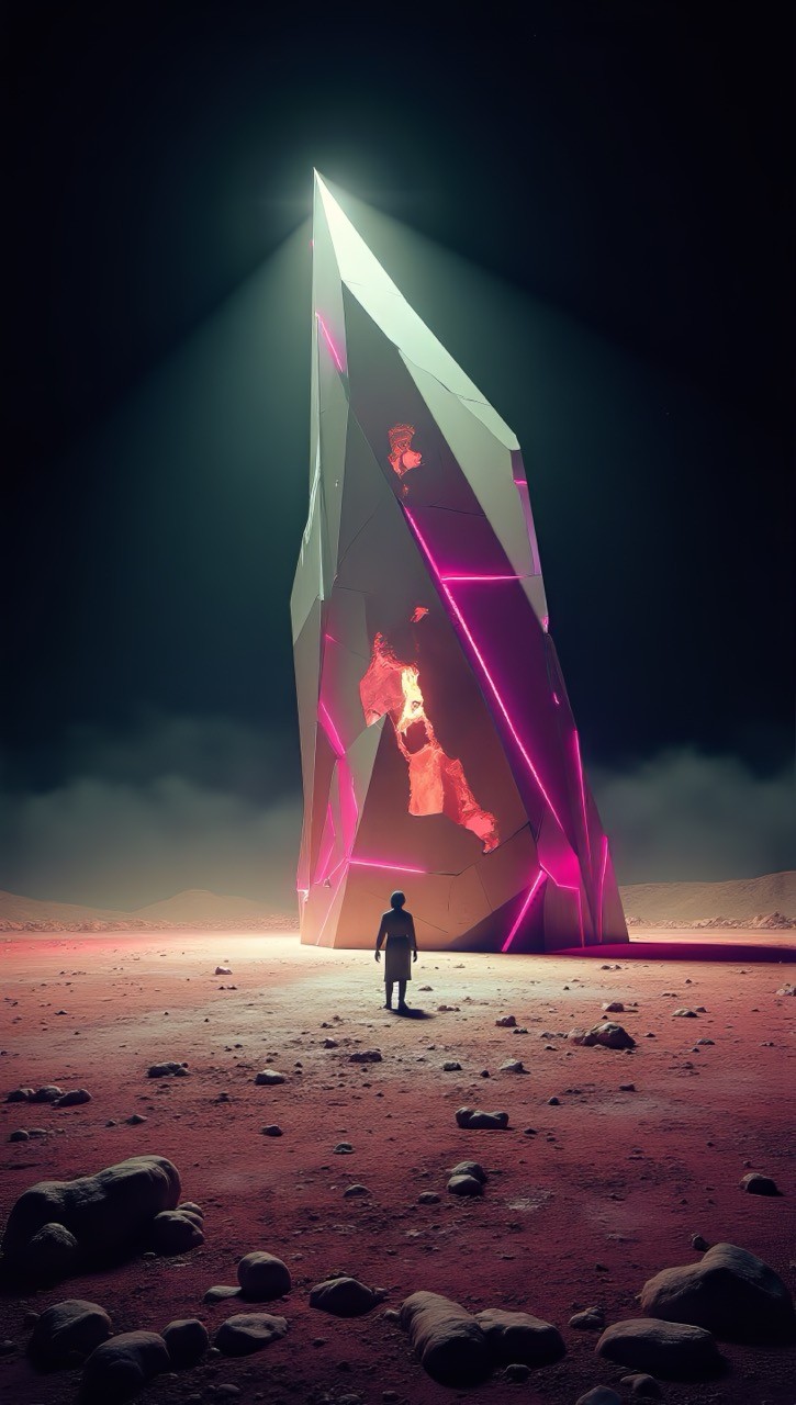 A 9×16 mobile wallpaper collection blending brutalism, sci-fi minimalism, and futurist architecture — each piece designed to feel like a glimpse into another world. Built entirely with AI, the series explores geometry, light, and space through the lens of digital surrealism.